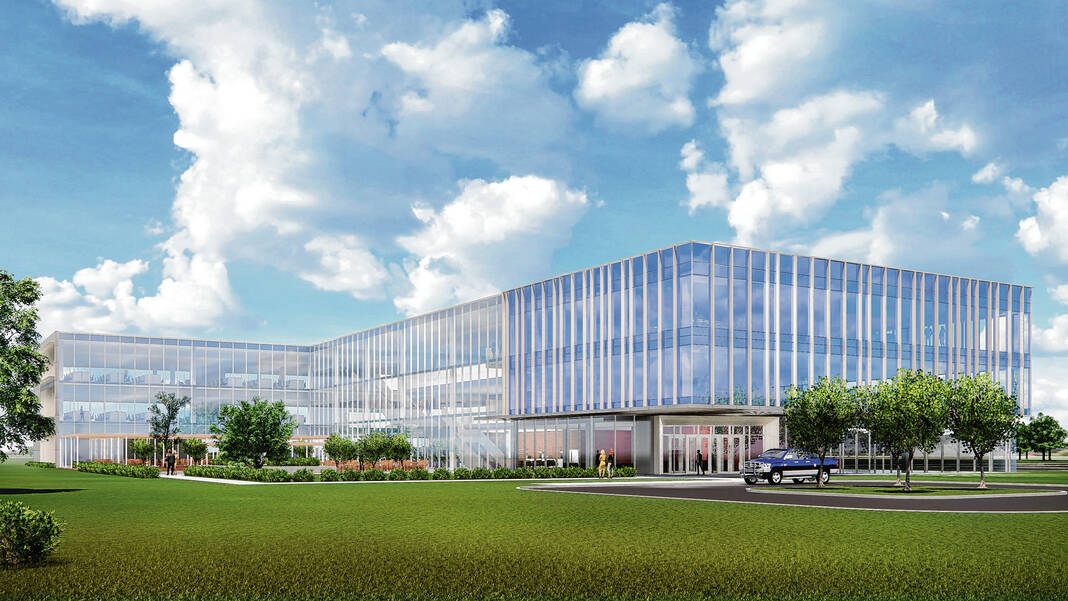 A rendering of an information technology and digital hub Cummins planned to build in Greenwood. The plans have since changed, and nothing is yet to be built on the land near County Line Road and Interstate 65.
