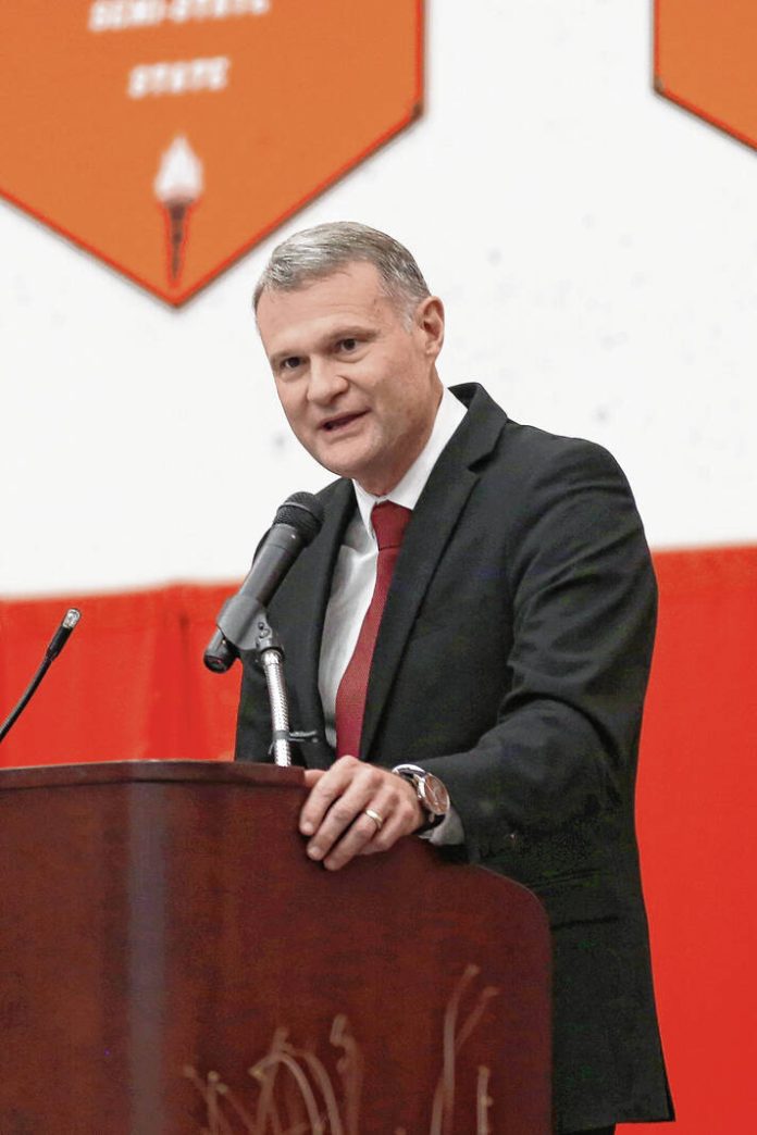 Carla Clark | For The Republic Dr. Jim Roberts gives the superintendent comments during the Columbus Signature Academy New Tech High School graduation held at Columbus East High School in Columbus, Ind., Friday, May 26, 2023.