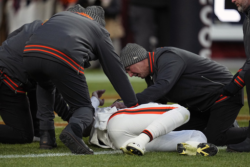 The Browns were trailing 17-12 and facing a third-and-12 at their own 23-yard line with 22 seconds left in the third quarter when Thompson-Robinson was hurt. He was looking for an open receiver when Browning closed in and planted his shoulder in Thompson-Robinson’s upper chest.
