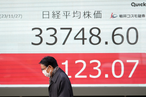 Japan’s benchmark Nikkei 225 dipped 0.4% in morning trading to 33,479.71 after the producer price index in October came in a little higher than expected, at 2.3%.