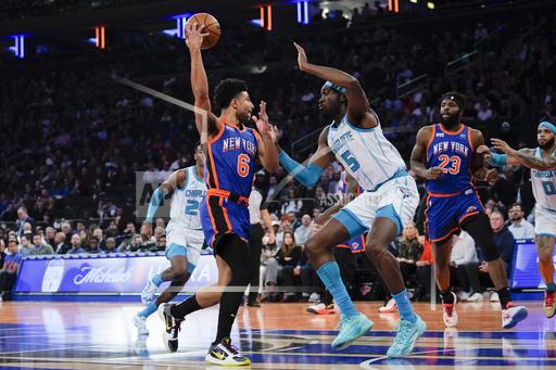 New York led by as many as 16 points late in the second quarter and had its lead trimmed down to 56-55 with 8:12 to play in the third quarter after the Hornets went on a 11-2 run, capped by five points from Miles Bridges.