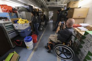 Volunteer Kyle Alumbaugh, with Horizon Bank, takes photos as he and his colleagues organize a basement storage room at Foundation for Youth for the bank’s first ever Horizon Cares Day in Columbus, Ind., Tuesday, Nov. 28, 2023.