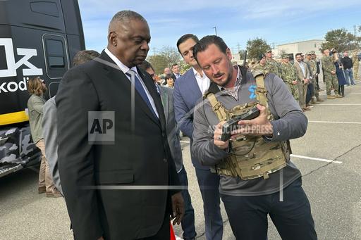 High-tech demonstrations were set up across a large parking area at DIU and inside the headquarters, allowing Austin to take a few minutes before the start of the meeting to see a number of projects being developed, including a virtual training device that will help Ukrainian pilots learn to fly F-16 fighter jets and swarming drones being developed for warfighters. The projects aren’t tied to the Australian agreement, but reflect the ongoing effort by the three nations to improve technology — an area where China often has the lead.