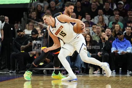 PHOENIX (AP) — Nikola Jokic looked content to spend most of his Friday night facilitating, setting up baskets with passes left and right as the Denver Nuggets built a big first-half lead.
