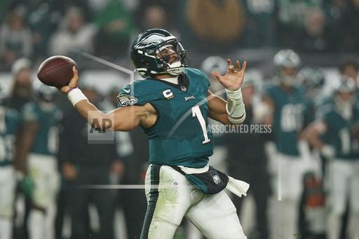 PHILADELPHIA (AP) — Philadelphia Eagles quarterback Jalen Hurts was checked for a concussion and briefly left Sunday’s game against San Francisco in the fourth quarter, returning after a visit to the locker room.
