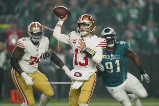PHILADELPHIA (AP) — Brock Purdy threw for 314 yards and four touchdowns, Deebo Samuel scored three TDs and Eagles quarterback Jalen Hurts was checked for a concussion in the San Francisco 49ers’ 42-19 win over Philadelphia on Sunday night.