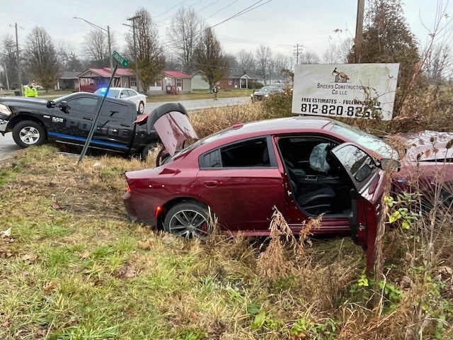 Master Trooper Mark LaMaster from ISP Sellersburg spotted and tried to stop the Charger as it approached Booe Road, where a Crothersville K9 and Austin PD unit attempted to set up stop sticks. As the Charger continued south, it collided with the Crothersville Police car, and the vehicles came to rest on the southwest side of the intersection of U.S. 31 and Booe Road. The driver then fled on foot along nearby railroad tracks. LaMaster and officers from Seymour and Austin gave chase and apprehended the driver a short time later.