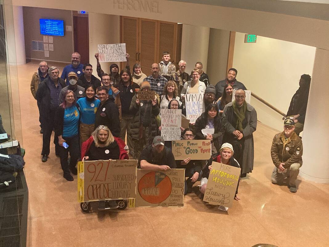 The organization previously released an online survey with one question: “Do you support the city of Columbus giving $5.8 million dollars to a corporate developer to subsidize building a luxury apartment complex on 6th and Washington St.?”