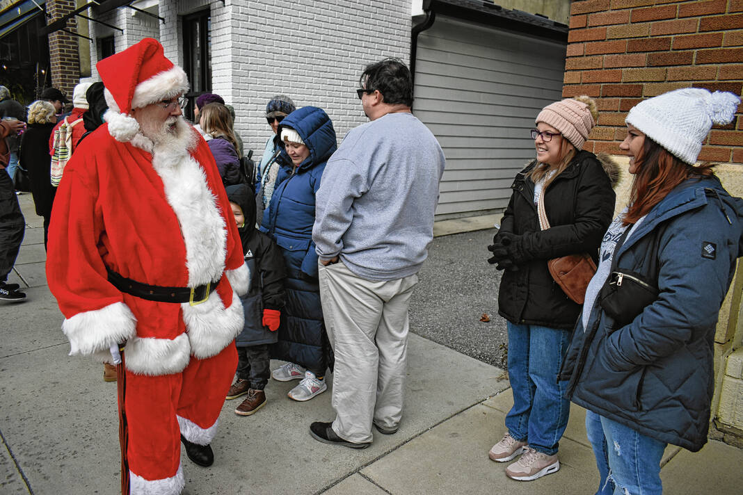 Santa Claus chats with shoppers waiting in line for the Franklin Chamber of Commerce’s Start Here Open House on Nov. 25.