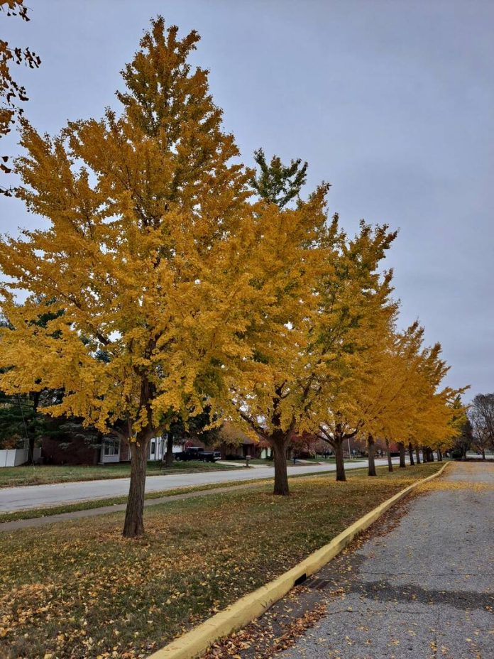 Kathy Roemmel of Columbus enjoys the row of Gingko trees near the Lillian Scmidtt Elementary School in Oct.