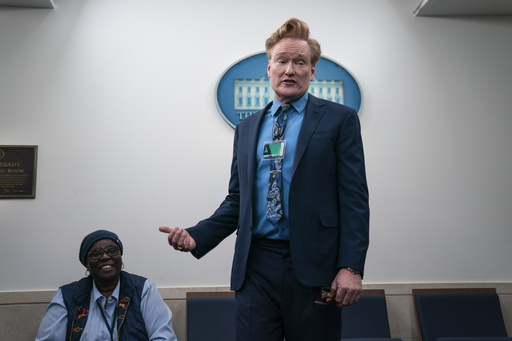 Conan O’Brien, the former host of NBC’s “The Tonight Show” and “Late Night,” was spotted by reporters in the White House briefing room ahead of the interview, but was coy when asked about the purpose of his visit to the White House.