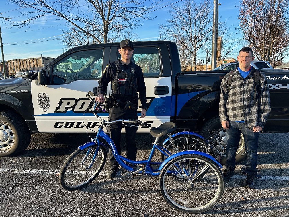 CPD patrol officers and detectives reviewed security video footage from the thefts and positively identified the suspect as Russell “Rusty” Rossman, 48, of 920 Chestnut St., Columbus. Detectives tracked Rossman to a home in Jewell Village where he was taken into custody and placed under arrest. Officers located the stolen tricycle and later returned the stolen property to its owner.’