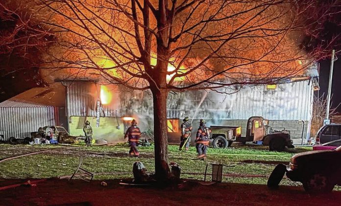 While the fire inside the barn owned by Mike Whittington was reported at 5:50 p.m. Sunday, the fire chief believes the metal building kept the flames and smoke from being noticed as the fire spread inside. By the time first responders arrived near the intersection of County Road 500N and South Lake Shore Drive, flames were already shooting through the barn’s roof, Mathis said.