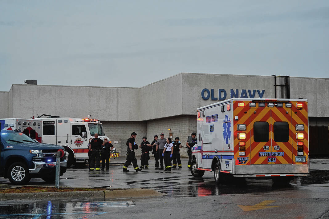 First responders from Johnson, Marion and Bartholomew counties respond to a mass shooting at the Greenwood Park Mall on July 17, 2022.
