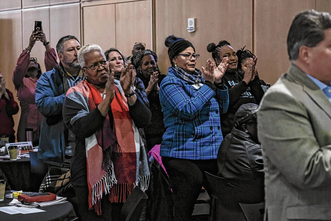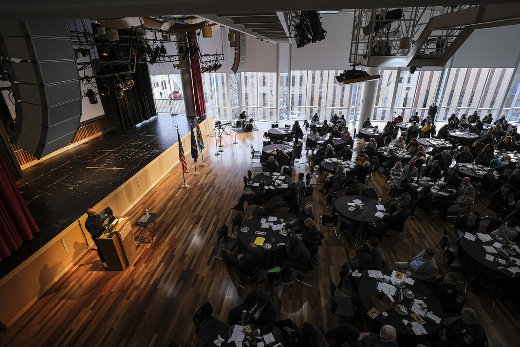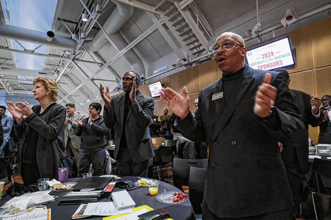 The gathering, with a crowd slightly smaller than last year’s estimated 350 people amid bitterly cold, single-digit temperatures, attracted more than 300 people representing leaders in government, business, nonprofits, education, houses of worship, law enforcement, and more. The local African American Pastors Alliance, seen as influencers in everything from education to media, organized the event with funding from business and corporate sponsors.