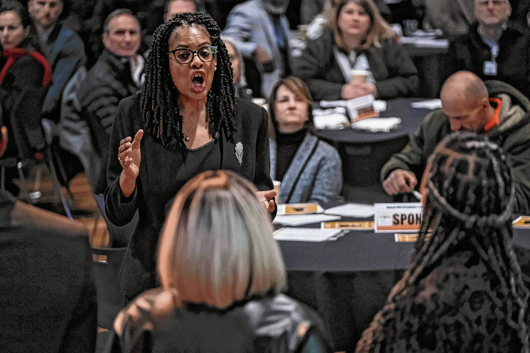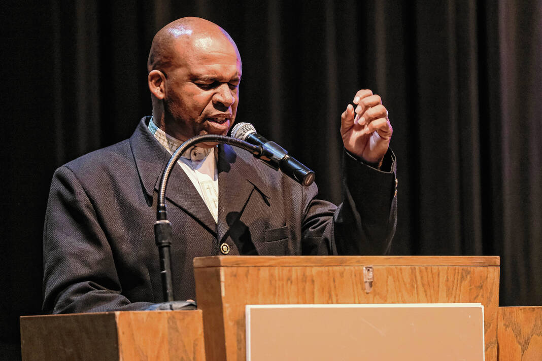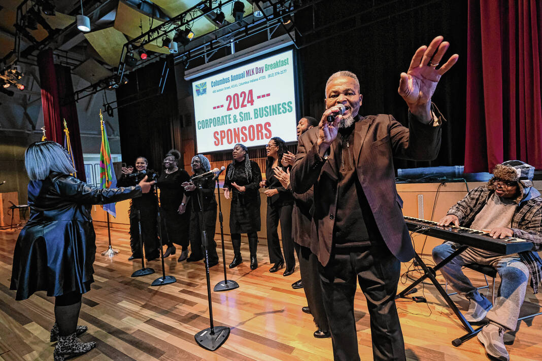 Mike Wolanin | The Republic Columbus City Councilman Jerone Wood speaks at the annual CommUNITY Breakfast celebrating Dr. Martin Luther King Jr. on Martin Luther King Jr. Day at The Commons in Columbus, Ind., Monday, Jan. 15, 2024.