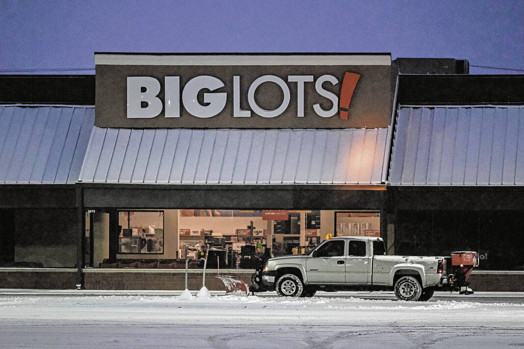 Mike Wolanin | The Republic A snow plow clears the lot at Clover Center in Columbus, Ind., Friday, Jan. 19, 2024.