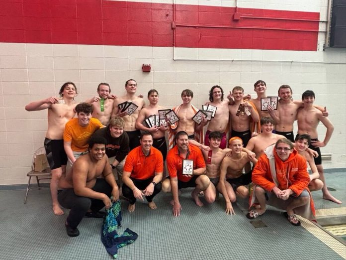 The Olympians won 10 of the 11 swimming events. Judah Nickoll took the 200-yard freestyle in a school-record 1 minute, 46.88 seconds and also captured the 100 backstroke (54.90), Cavan Stilson won the 50 freestyle (22.52) and 100 freestyle (48.96) and Misha Machavariani took the 100 butterfly (53.12) and 100 breaststroke (1:00.74).