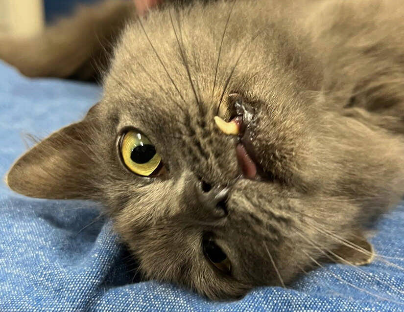 Gummy Bear came to us from a rough situation and is so happy to now be here at the shelter. She is a sweet girl who loves being pet, and will become your best friend for some canned food. Gummy Bear does have a funny snaggle tooth but it doesn’t seem to bother her and she can eat just fine.