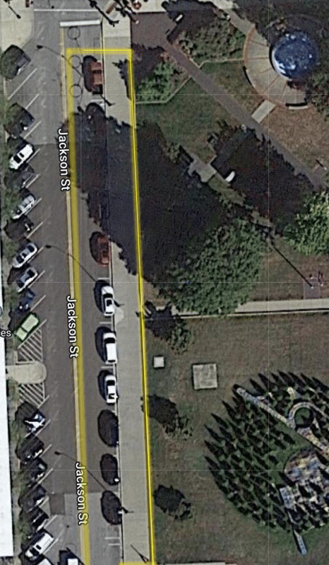 “The roadside and sidewalk on the north and south sides shall have temporary chain link fencing. The lawn shall have posts with snow fencing to keep pedestrians out of the storage area. A “Road Closed” sign shall be placed at the south entrance to Jackson Street coming off Second Street,” the site plan reads.