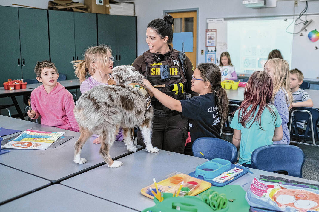 The dog has a number of things that she may do on a daily basis. Pendleton is a DARE instructor and Starlight tags along with her three days a week for sessions that last an hour. The conversations can sometimes be difficult, Pendleton said, so Starlight is there to give the kids some reassurance.