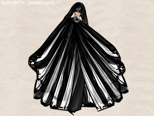 “A little fur coat… that’s not enough for an entrance for a contemporary audience that expects a level of wow. So I started building this incredible sculpture of a swan arm, so it looked like she was enveloped in it and opened large scale, and it kind of became this… giant opera coat with a marabou-trimmed collar inside,” Posen said.