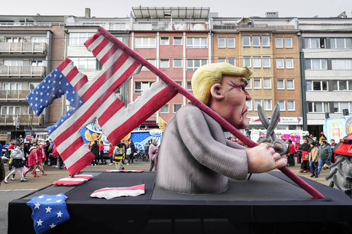 DUESSELDORF, Germany (AP) — Throngs of revelers took to the streets of Germany’s Carnival strongholds on Monday, accompanied by floats that satirized the Ukrainian and Russian presidents, German politicians, former U.S. President Donald Trump and many others.