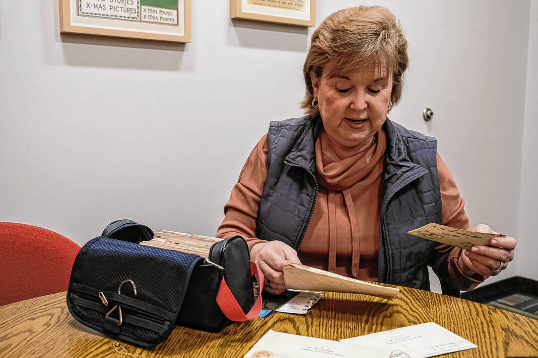 Mike Wolanin | The Republic Terri Metz talks about the collection of love letters her great uncle Tolbert Barnhill sent to her great aunt Sophronia Barnhill (Brewer) while serving with the U.S. Army during World War II during an interview at The Republic in Columbus, Ind., Tuesday, Feb. 6, 2024.