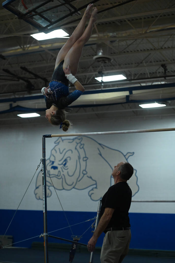 Still, the Bull Dogs claimed the top three spots in the all-around. Junior Reese Euler swept the vault (9.55), bars (9.3), beam (9.55) and floor (9.5) to win the all-around with a season-best 37.9.