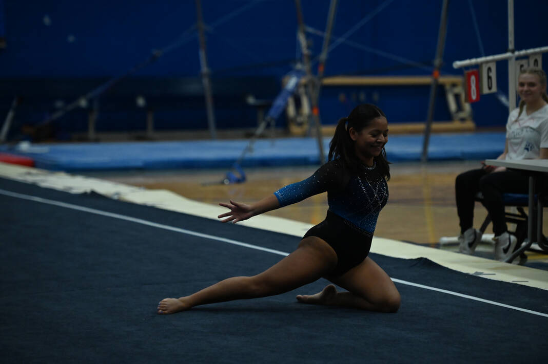 Emerson Chambers placed second on the vault (8.8) and bars (8.1) and fourth on the floor (8.225) in taking third in the all-around with a 33.25. Arwyn Tian was second on the beam (8.575) and fourth on the bars (7.675).
