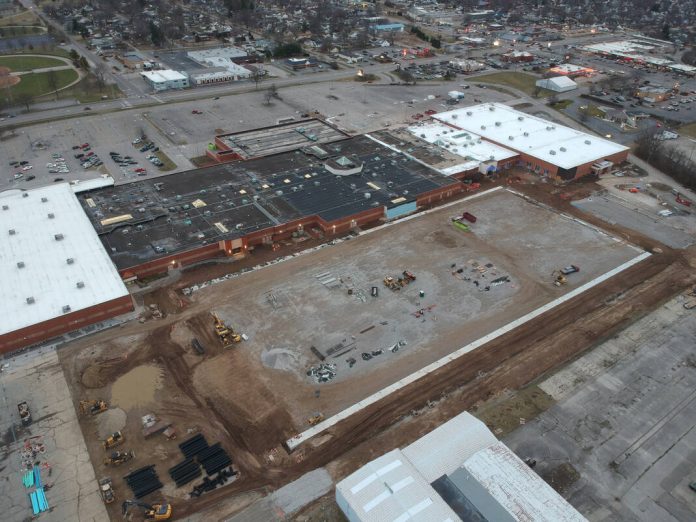 John Vinson took this photo showing the foundation that the fieldhouse will be built on, from a height of 400 feet, on Jan. 28, 2023.