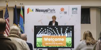 Columbus Mayor Mary Ferdon delivered her inaugural State of the City address at NexusPark. Following her remarks, she and other city officials along with community partners and leaders took part in a ribbon cutting ceremony to mark the opening of the Circle K Fieldhouse at NexusPark.