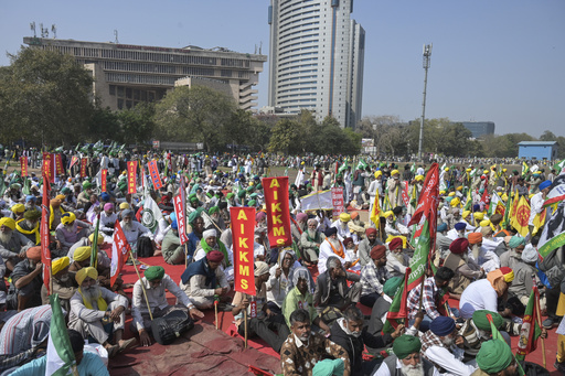 NEW DELHI (AP) — Thousands of farmers protested in India’s capital on Thursday to press their demand for a new law that would guarantee minimum crop prices, after weeks of being blocked from entering the city.