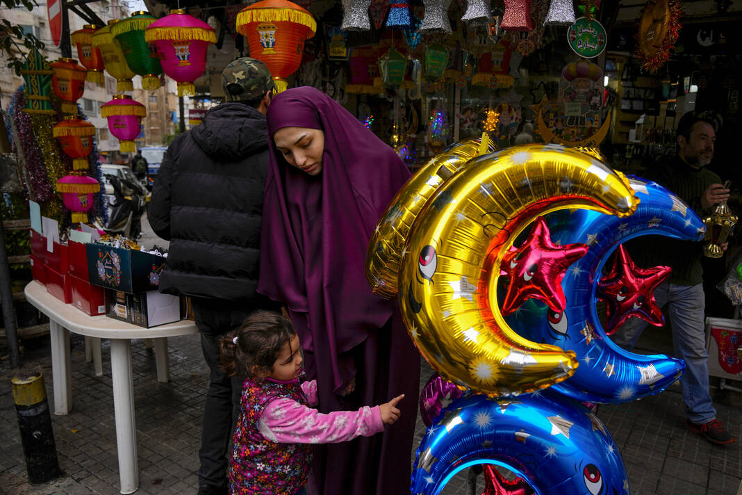 People shop for decorations for the Muslim holy month of Ramadan at a shop in Beirut, Lebanon on March 9.