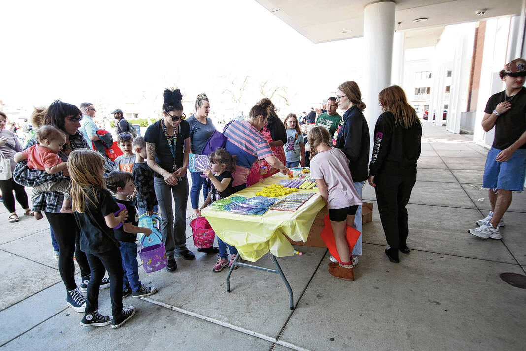 Carla Clark | For The Republic People bring the tickets they found in the eggs to claim their prizes during the Emma Grace Foundation Easter egg hunt held at Central Middle School, Columbus, In., Saturday, March 30, 2024.
