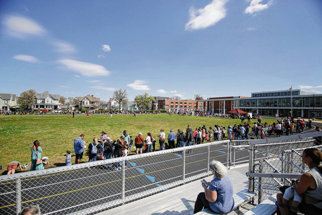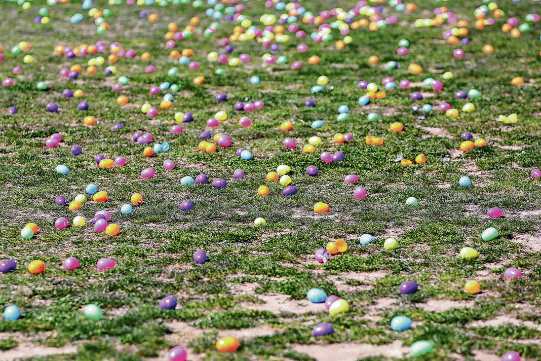 Carla Clark | For The Republic Some of the 20,000 eggs scattered on the field during the Emma Grace Foundation Easter egg hunt held at Central Middle School, Columbus, In., Saturday, March 30, 2024.