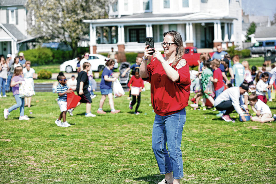 Carla Clark | For The Republic Linsey Sweet, mother of Emma Grace Sweet, takes a video of the hunt during the Emma Grace Foundation Easter egg hunt held at Central Middle School, Columbus, In., Saturday, March 30, 2024.