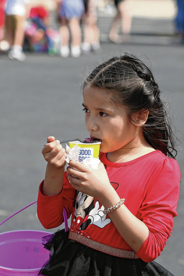 Carla Clark | For The Republic Pillar Gonzalez eats a Kona Ice during the Emma Grace Foundation Easter egg hunt held at Central Middle School, Columbus, In., Saturday, March 30, 2024.