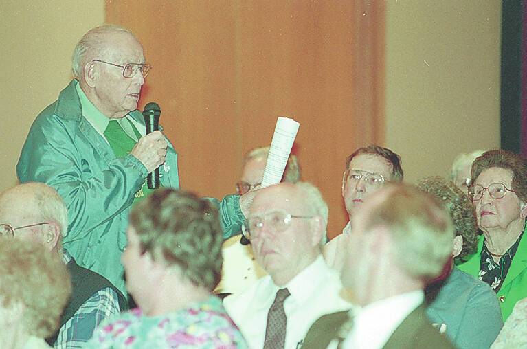 Dick Christopher of Columbus speaks about the potential relocation of the Senior Center on April 6, 1999.