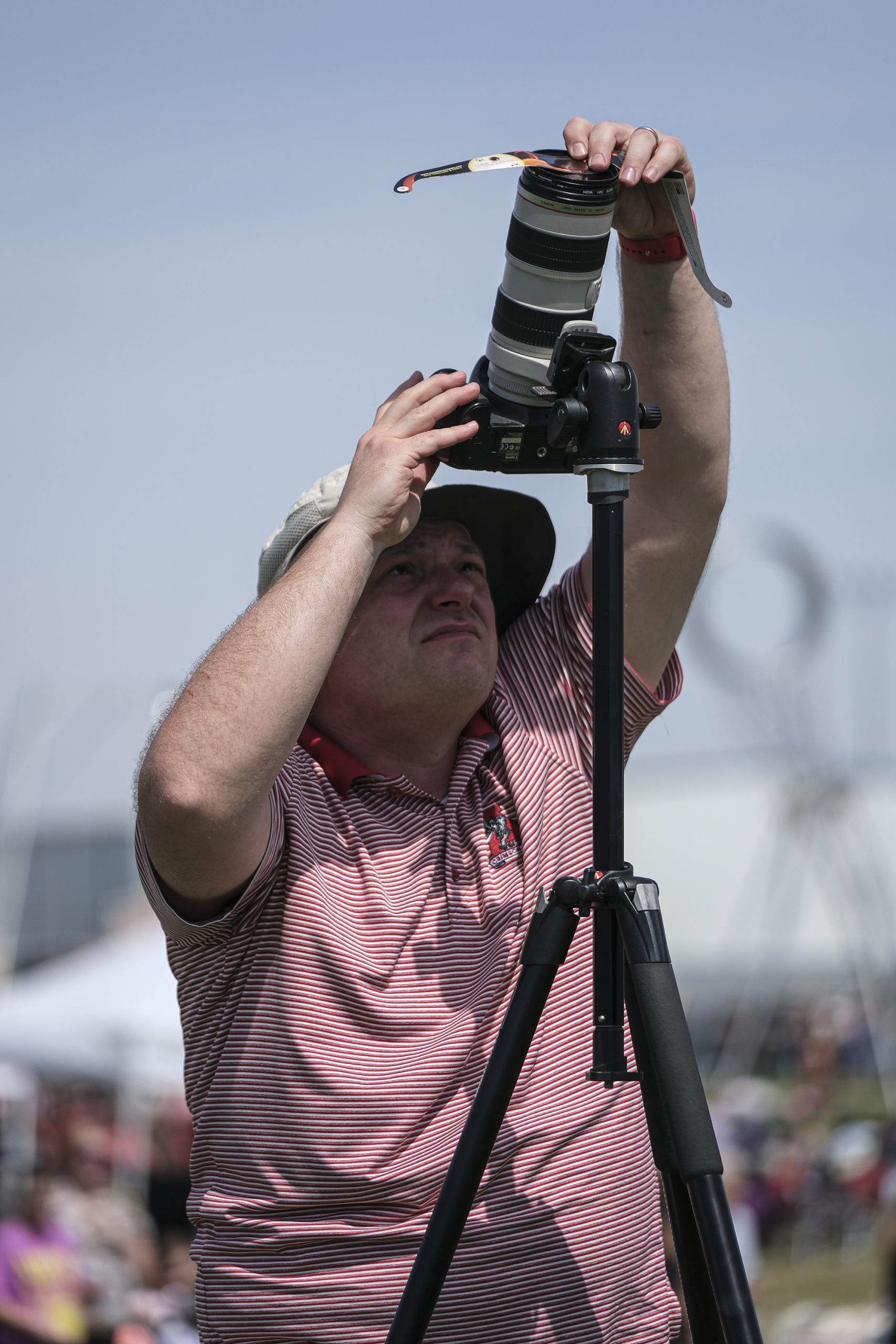 Brian Mauter preps his camera to photograph the eclipse during the Eclipsing the Renaissance eclipse viewing event at the Columbus Airport Airpark in Columbus, Ind., Monday, April 8, 2024.