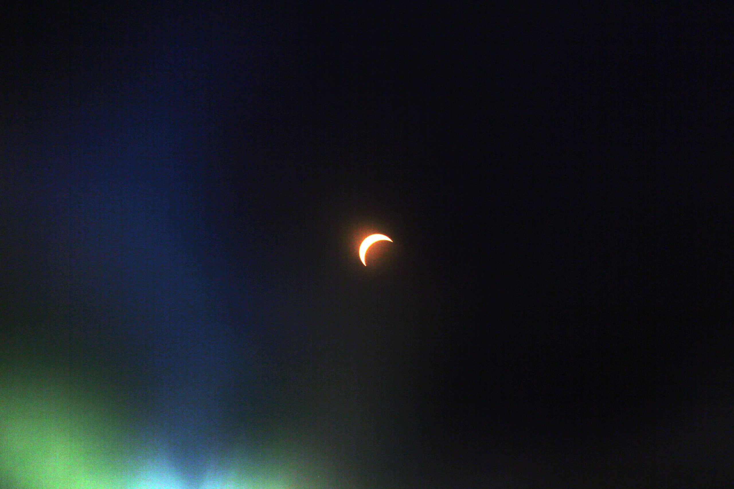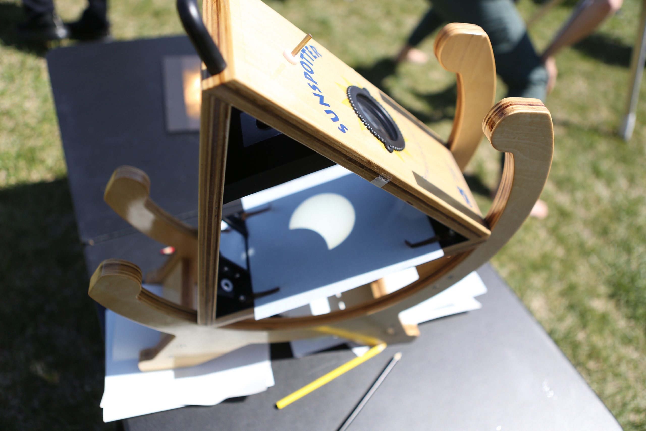 The eclipse through a Sunspotter device from Hanover College during the Solar Spectactular Eclipse Viewing Party hosted by kidscommons and the Bartholomew County Public Library at Central Middle School, Columbus, Ind., Monday April 8, 2024.