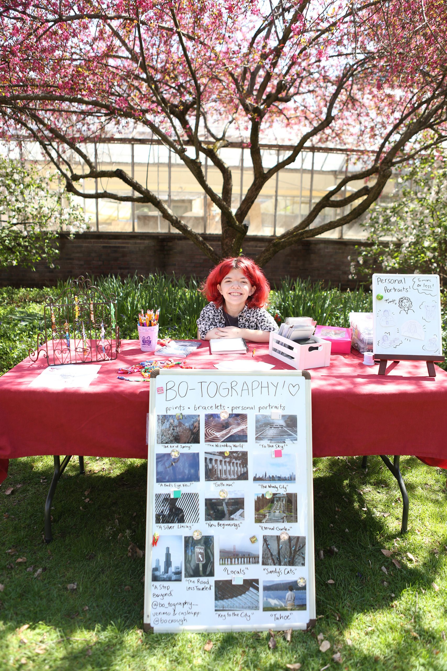 Bo Crough at her Bo-Tography booth at the No Mad Arts solar eclipse event in Irwin Gardens, Columbus, Ind., Monday, April 8, 2024.