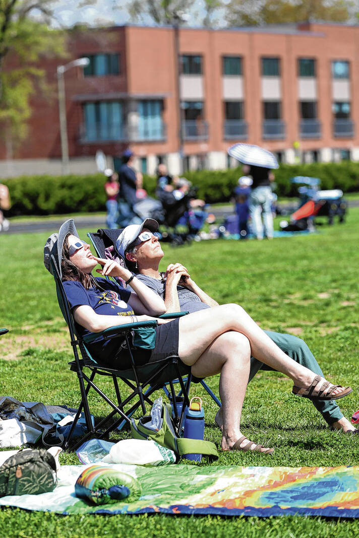 Milan Reed and April Weathers, Chicago-residents, were always going to come down this way for the eclipse, but didn’t settle on Columbus until the day of the solar event.