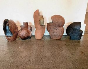 * Here are just a few of the small pieces in Columbus sculptor Robert Pulley’s latest one-man show opening Friday at Edington Gallery, 1495 N. Harding St. in Indianapolis. His work is all over Columbus, most notably in the form of “Ancestral Way” lining Third Street near Jonathan Moore Pike. Information: https://edingtongallery.art.