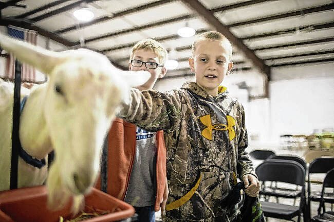 Jayden Miller from Schmitt Elementary pets a goat owned by Mike Roberts of Roberts’ Kids Farm during the Farm Bureau’s Ag Expo in April 2014 at the Bartholomew County Fairgrounds.