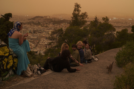 ATHENS, Greece (AP) — Skies over southern Greece turned an orange hue on Tuesday as dust clouds blown across the Mediterranean Sea from North Africa engulfed the Acropolis and other Athens landmarks.