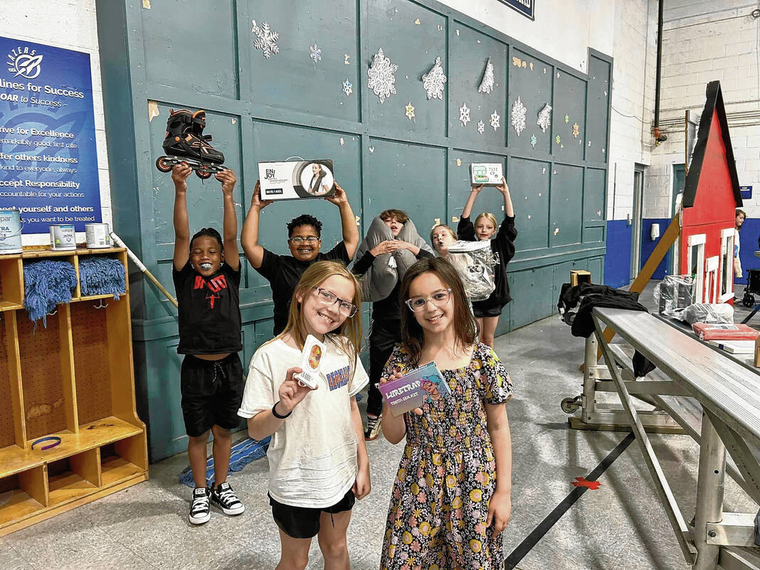 A quick perusual of 4 Good Community’s website under their school outreach section shows students proudly beaming while posing with a violin, Funko Pops, a mirror, a baby swing, and a foot stool to name a few.