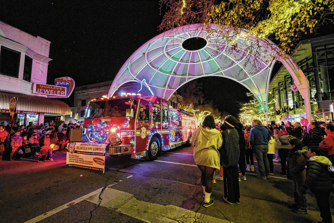Mike Wolanin | The Republic A Harrison Township fire truck passes under Exhibit Columbus installation InterOculus during the Columbus Festival of Lights Parade in downtown Columbus, Ind., Saturday, Dec. 2, 2023.