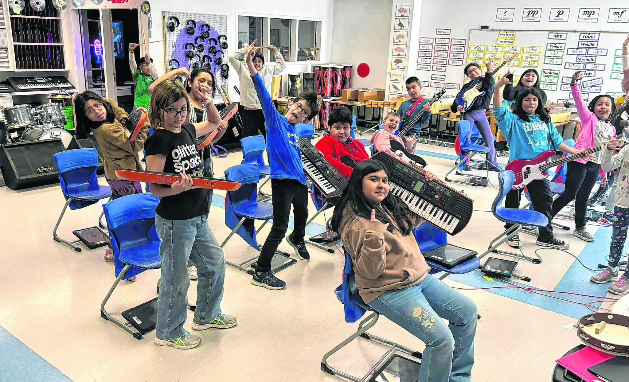 A group of music students at Clifty Creek Elementary School prepare for a battle of the bands competition. Video by Brad Davis