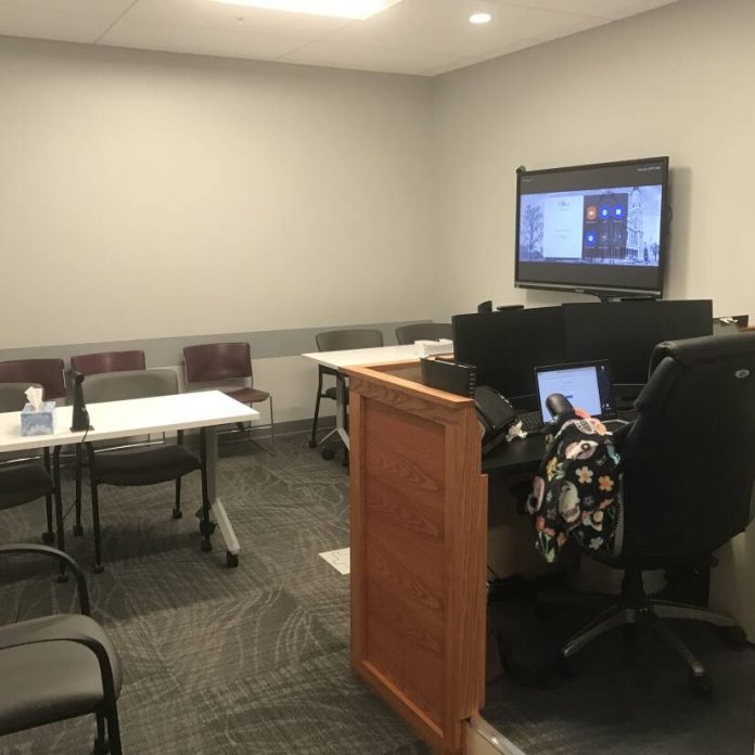 Mark Webber | The Republic Space is tight at the temporary juvenile courtroom at the Bartholomew County Court Services building.